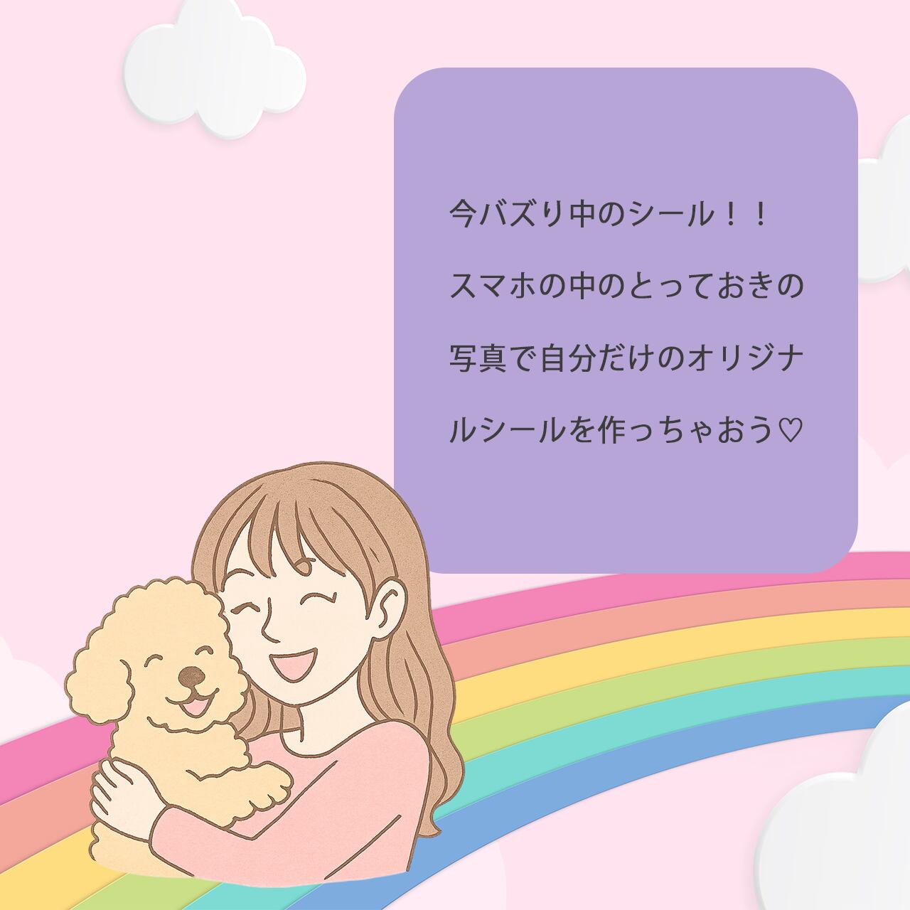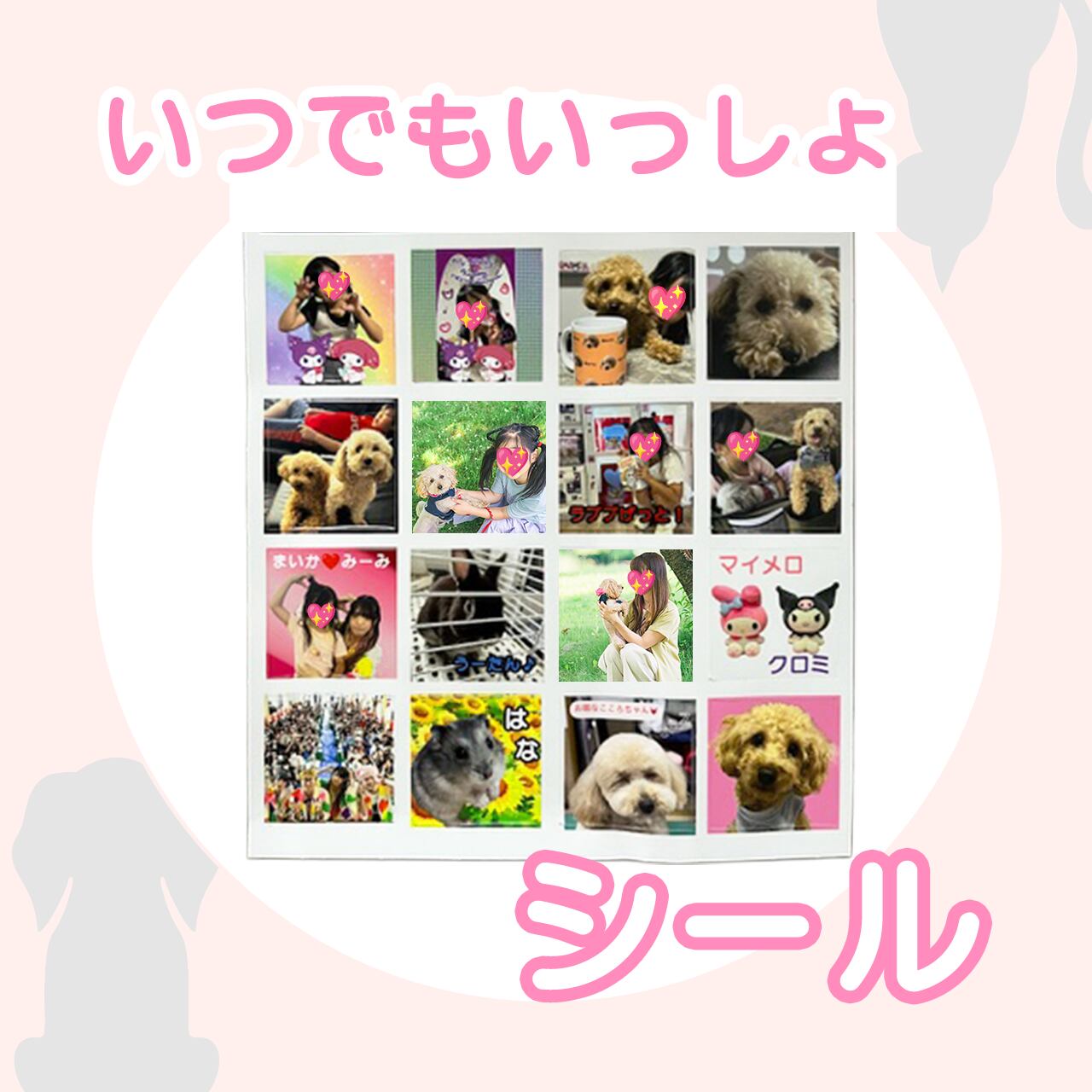 いつでもいっしょ♡シールです(^^) ペットちゃんのお写真であなただけのシールを一緒にデザインいたします! 基本のデザイン ・お写真 ・文字入れ ・背景色